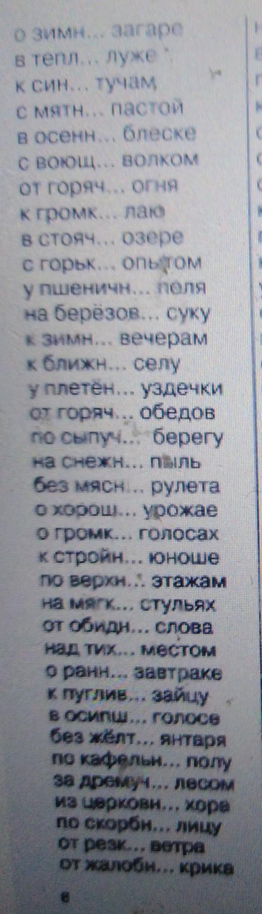 1 )зимнем 2)тёплой 3)к синим 4)мятной 5)осеннем 6)воющем 7)горячего