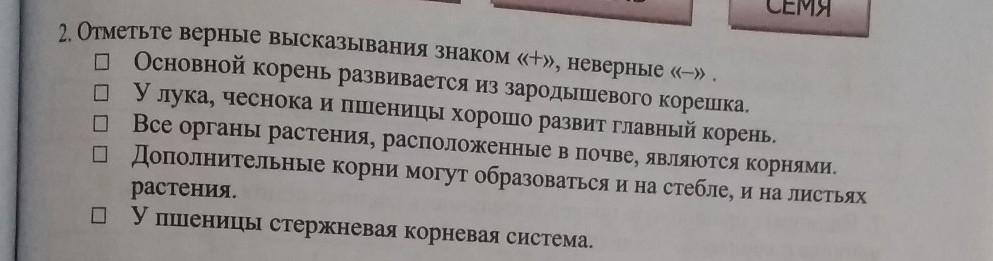 2)У лука, чеснока и пшеницы хорошо развит главный корень. (-)