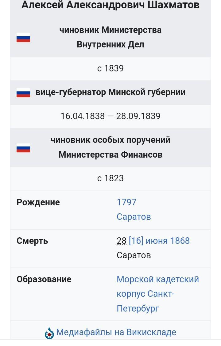 Шахматов Алексей Александрович (1797 Саратов — 28 [16] июня 1868 Саратов) — государственный деятель, отставной капитан-лейтенант флота (1822); Действительный статский советник (1841); чиновник Министерства Внутренних Дел (с 1839), Вице-губернатор Минской губернии (1838—1839), чиновник особых поручений Министерства финансов; потомственный дворянин, крупный землевладелец.