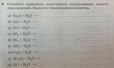 ж)P2O5 + 3H2O = 2H3PO4 (фосфорная или ортофосфорная кислота)
