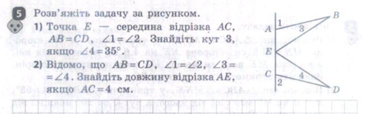 АЕ=СЕ, АВ=СD; т.к. углы первый и второй равны, то равны и им смежные углы при вершинах А и С соответственно, значит, треугольники АЕВ и СЕD равны по первому признаку равенства треугольников, по двум сторонам и углам А и С между ними. значит, из равенства треугольников следует равенство угла 3 и 4, т.о. угол 4 тоже равен 35°