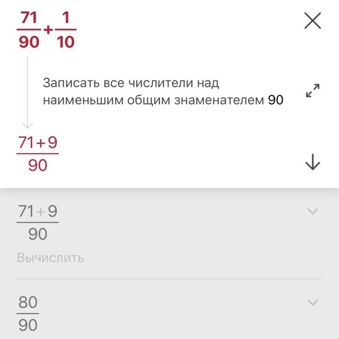 После - сократить числитель и знаменатель на 10. Ответ 8/9