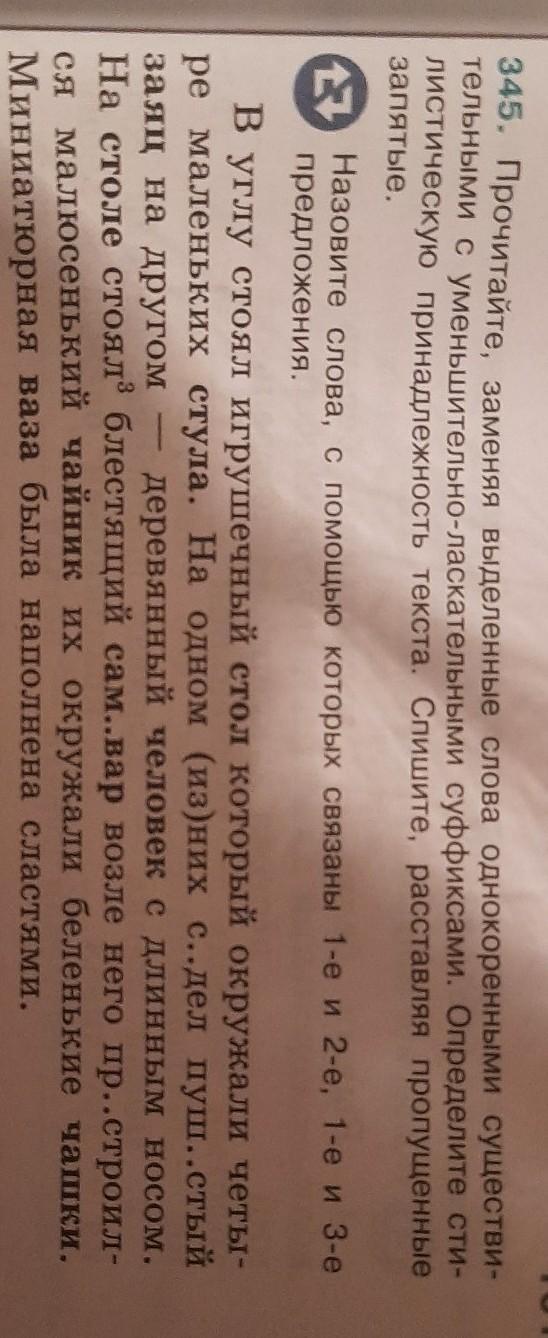 В углу стоял игрушечный столик, который окружали четыре маленьких стульчика.На одном из них сидел пушистый зайчик, на другом - деревянный человечек с длинным носом.На столе стоял блестящий самоварчик, возле него пристроился малюсенький чайничек, их окружали беленькие чашечки.Миниатюрная вазочка была наполнена сластями.