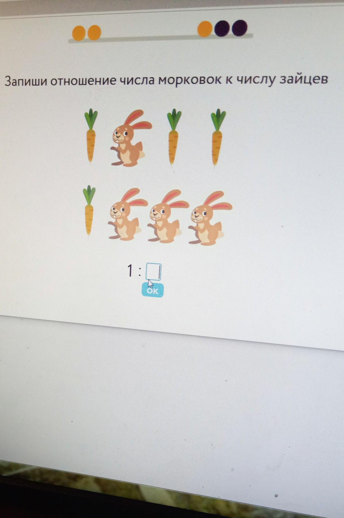 и морковок 4 и зайцев 4, поэтому 4 делим на 4=1