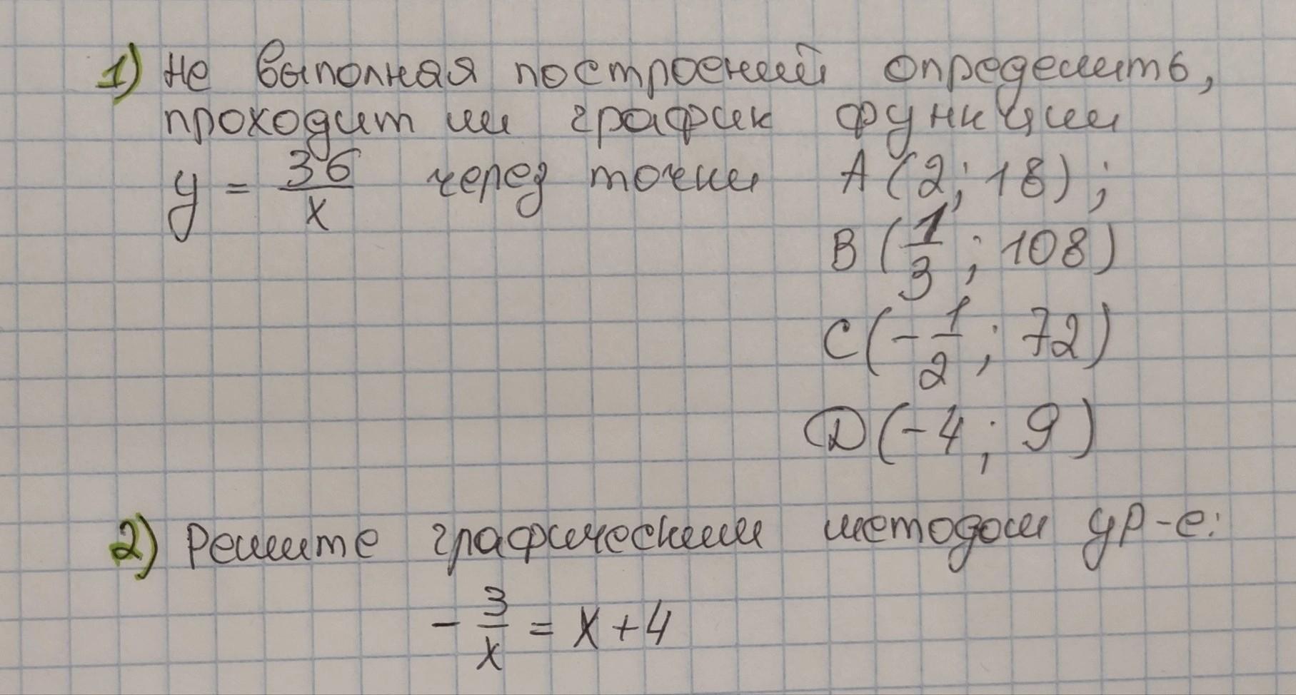 напр. y = 36/x подставляешь а, тогда выходит 18= 36/2, далее решаешь, выходит что 18= 18, тогда графих проходит