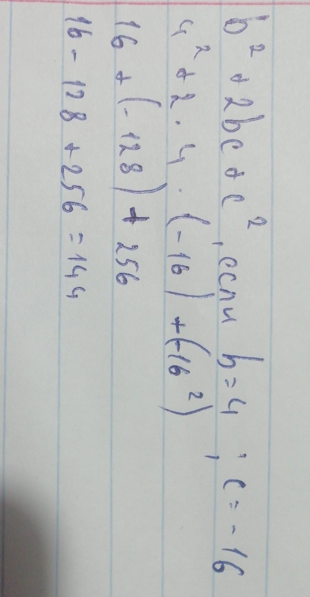 b²+2ac+c²=(b+c)²=(4-16)²=144