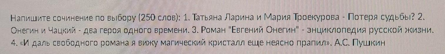 Вот что я понял из романа, из «энциклопедии русской жизни». А хотел бы еще узнать, а были ли другие люди и другая жизнь? Об этом Пушкин в своем романе ничего мне не рассказывает. Рассказывает ли в других своих произведениях? Но это уже тема для другого сочинения.