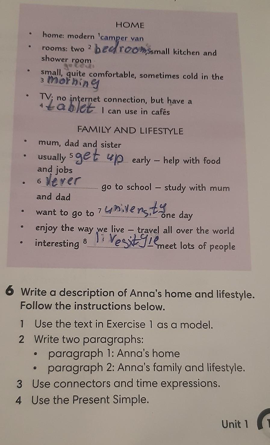 Anna’s home is big and cozy.There are two floors and four rooms on the each floor.There is a comfortable kitchen, living room, four bedrooms and two bathrooms.