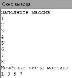 В одномерном массиве, состоящем из 8 целочисленных элементов, найти нечётные элементы массива