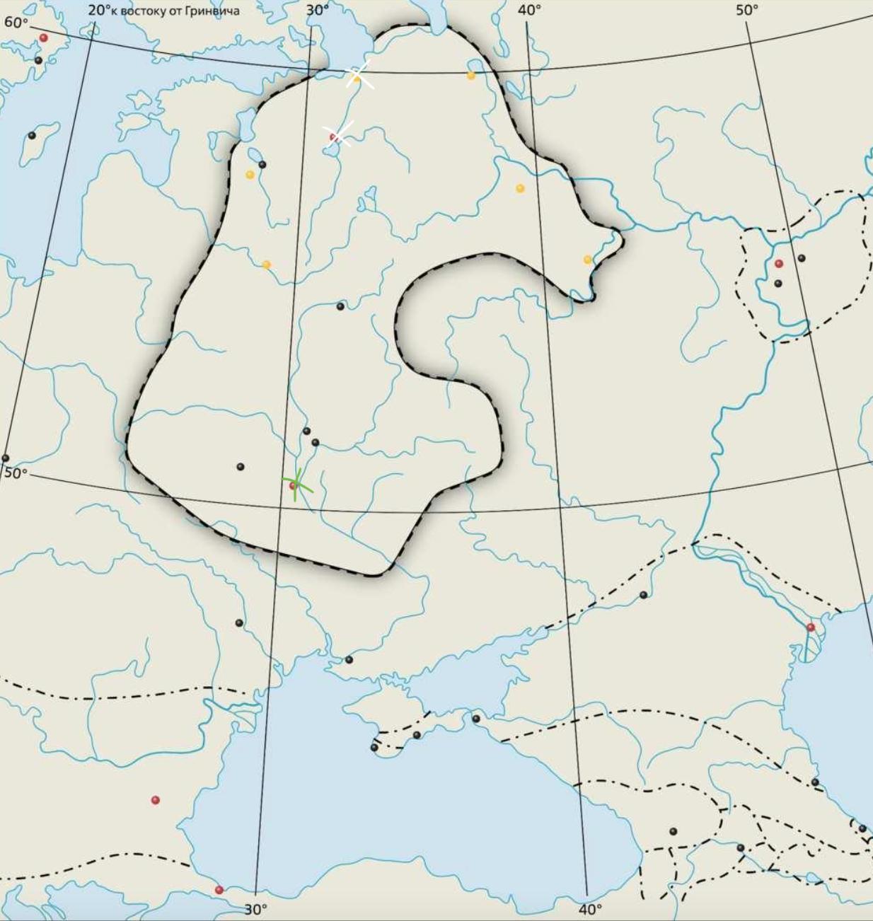 Отметьте на карте город, который был объявлен князем Олегом столицей.