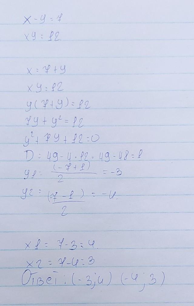 Ответ:(y=3; x=4) ; (y=4 x=3)