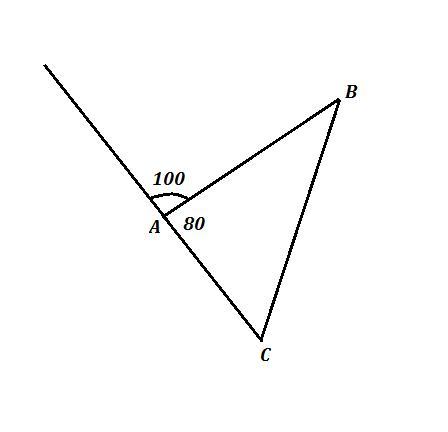 Если внешний угол треугольника = 100° , то внутренний угол треугольника равен 180°-100°=80° .