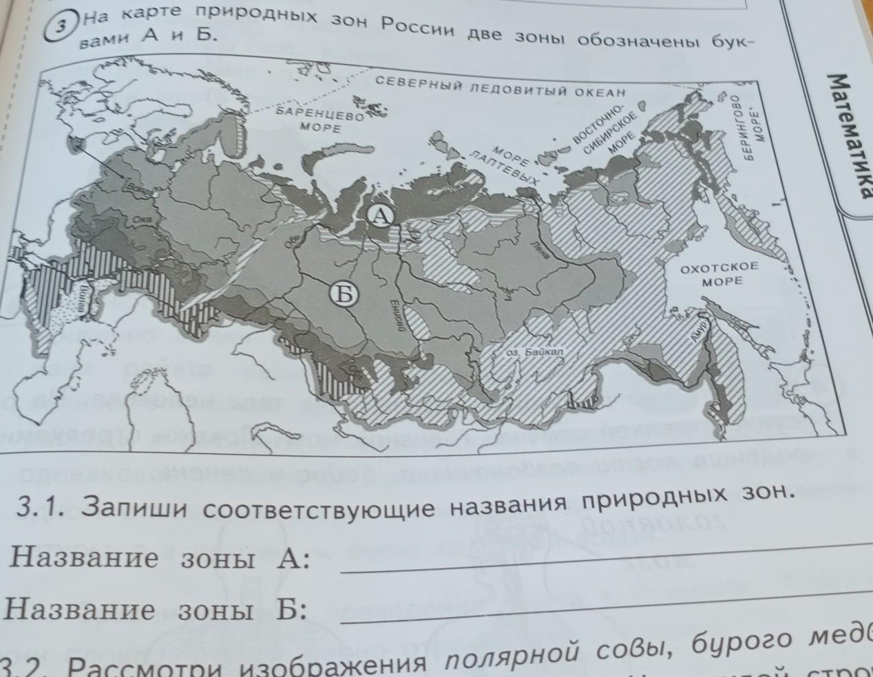 (3)На карте природных зон России две зоны обозначены бук- вами А и Б. СЕВЕРНЫЙ ЛЕДОВИТЫЙ ОКЕАН БАРЕНЦЕВО МОРЕ БЕРИНГово MOPES ЛАПТЕВЫХ МОРЕ СУФ восточно- СИБИРСКОЕ Р МОРЕ обь Лена охотское МОРЕ (Б) Волга Enuceu Амур ая, Байкал 3.1. Запиши соответствующие названия природных зон. Название зоны А: Название зоны Б: вариант 4