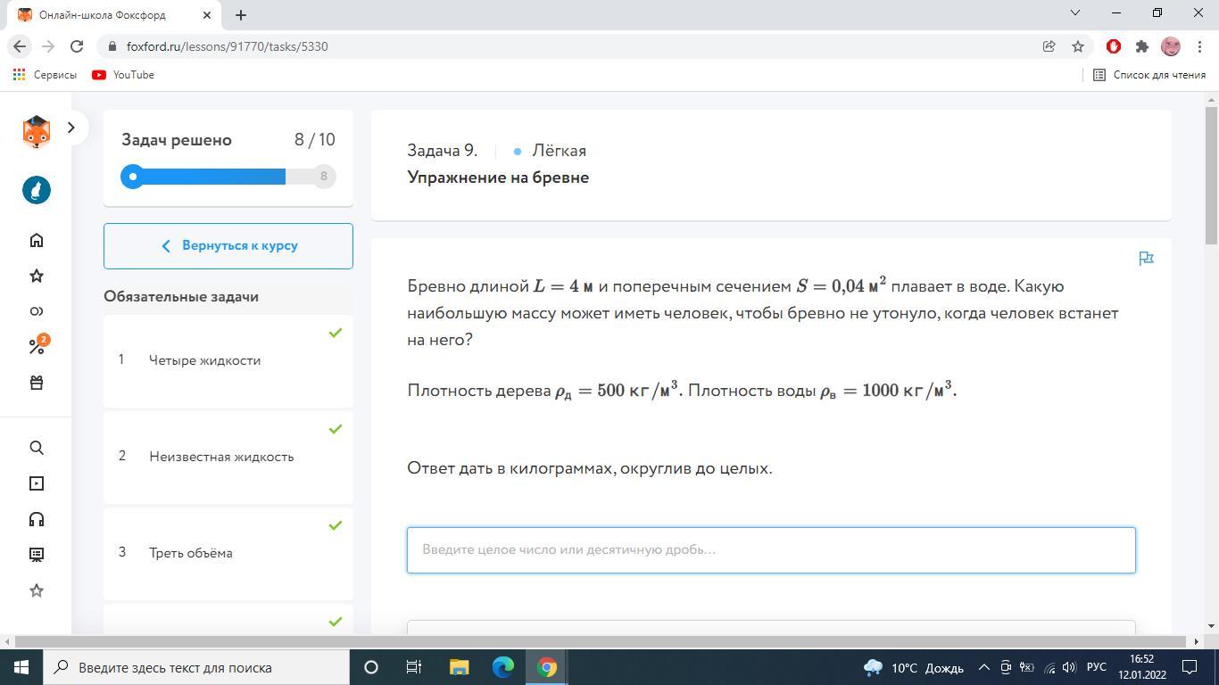 L=4 м S=0.04 м² рд=500 кг/м³ рв=1000 кг/м³ m=?