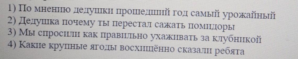 Ответ:1) По мнению дедушки прошлый год был самый урожайный. {- =}( Кроме точки ничего не ставим)