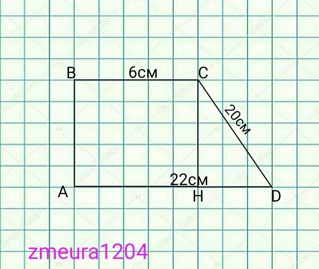 1. В прямоугольной трапеции основания равны 22 см и 6 см, большая боковая сторона - 20 см. найдите периметр трапеции.
