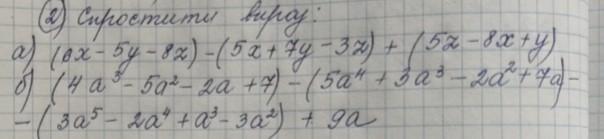 а) (6х - 5у - 8z) - (5x + 7y - 3z) + (5z - 8x + y) =