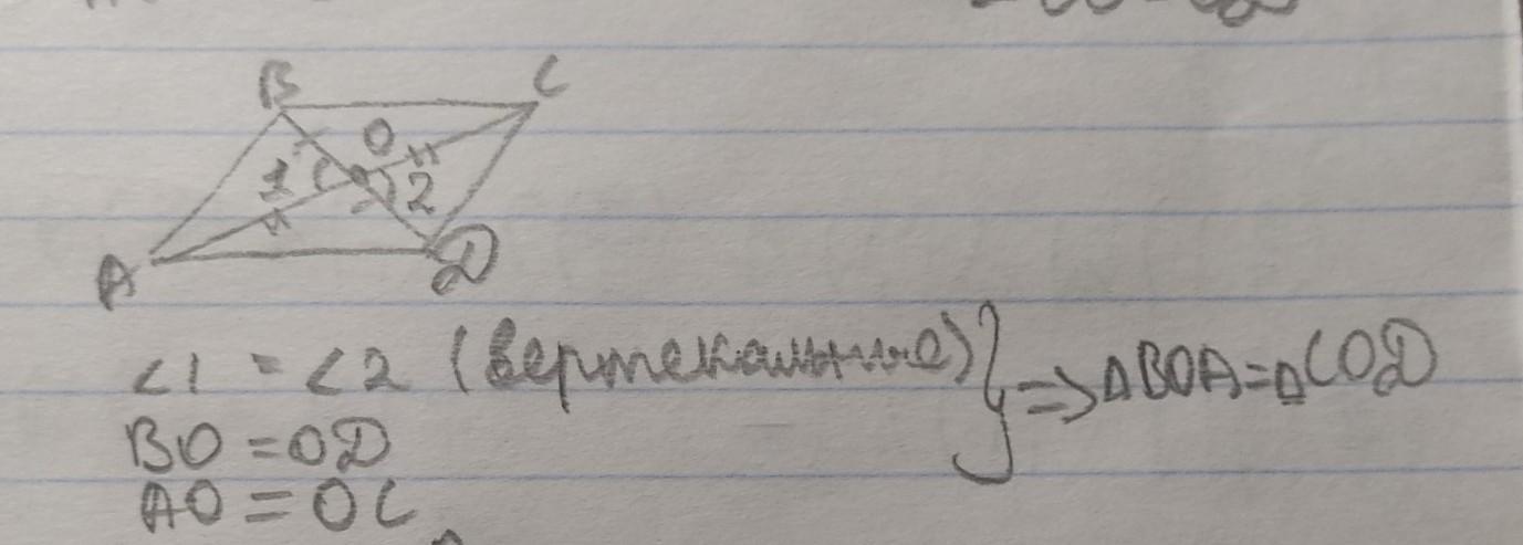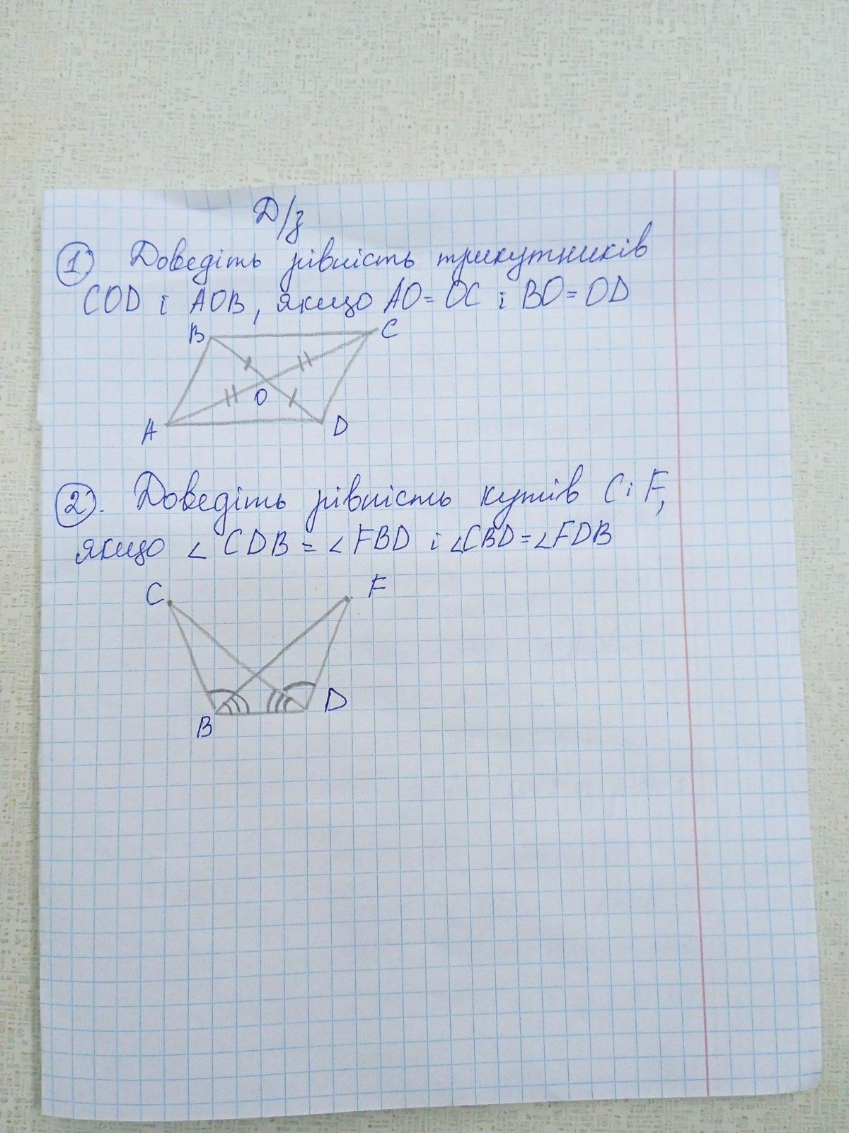 доведіть рівність трикутників cod і aob якщо ao=oc і bo=od