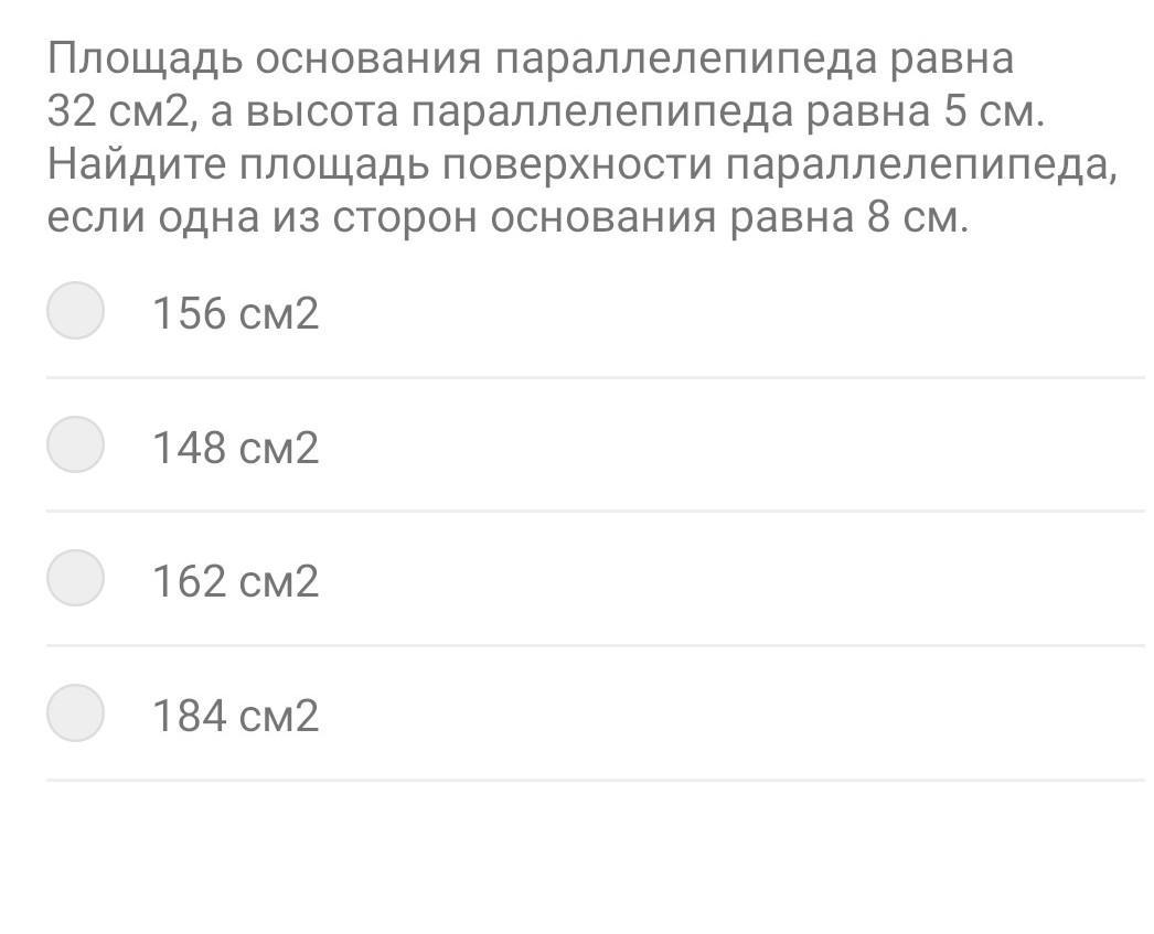 1. Площадь поверхности параллелепипеда вычислим по формуле: