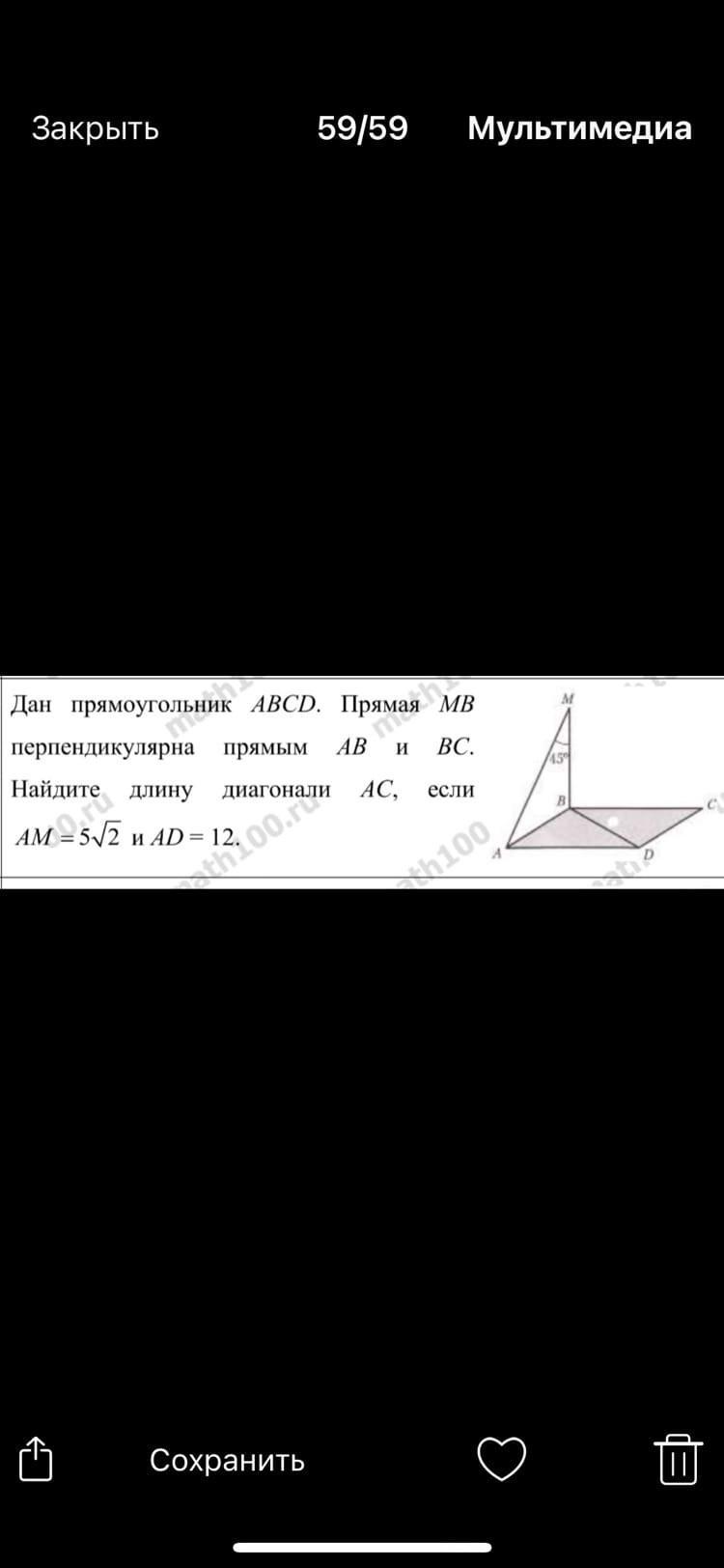 ΔАВМ равнобедренный, прямоугольный (∡В=90°);