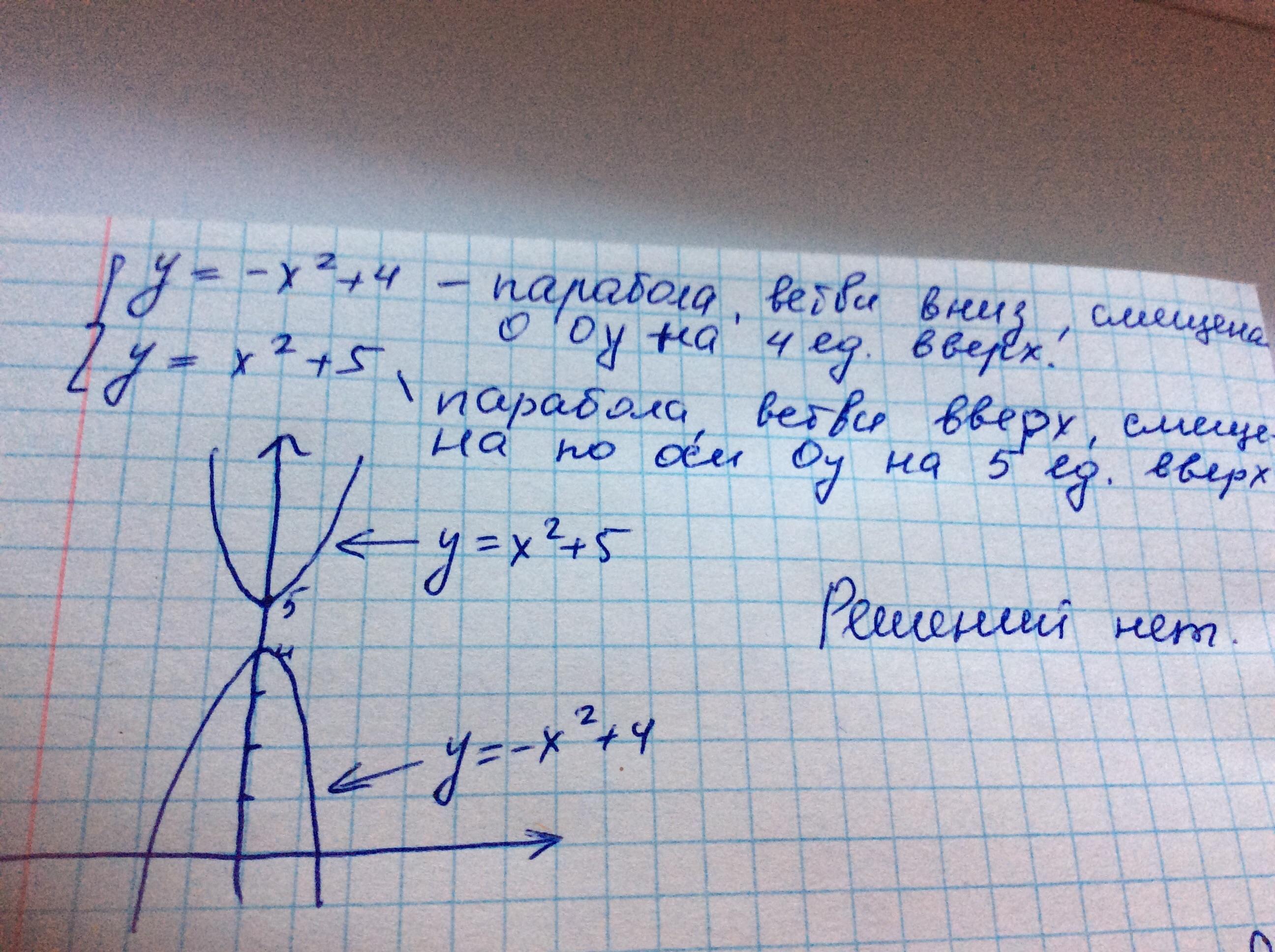 Эти параболы не имеют точек пересечения, а значит система не имеет решения .