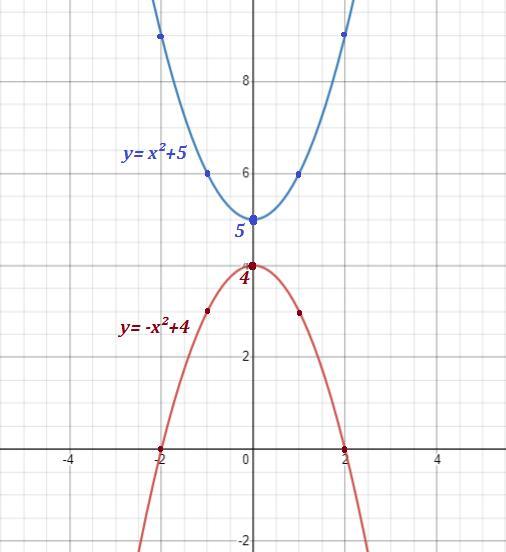 с ветвями, направленными вниз, поднятая на 4 единицы вверх вдоль оси ОУ . Вершина этой параболы в точке (0,4) .