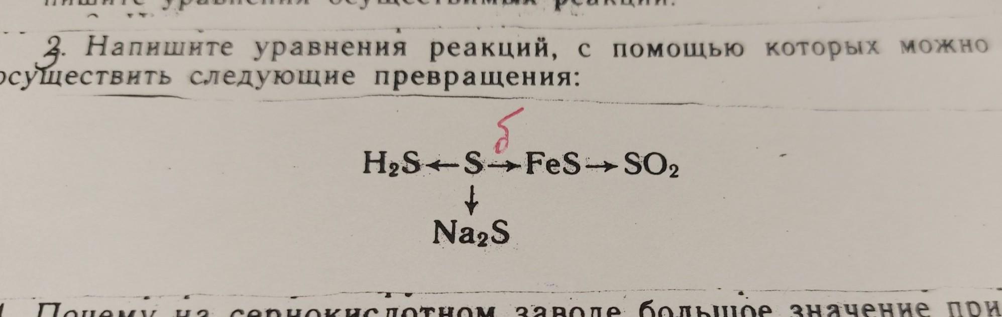 Рес 3. Напишите уравнения реакций, с помощью которых можно осуществить следующие превращения: H,S-S-Fes SO, 1 Na, S