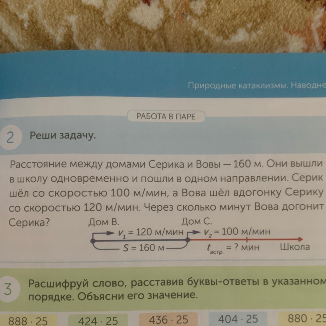Тогда: 160/20=8 - через 8 минут Вова догонит Серика