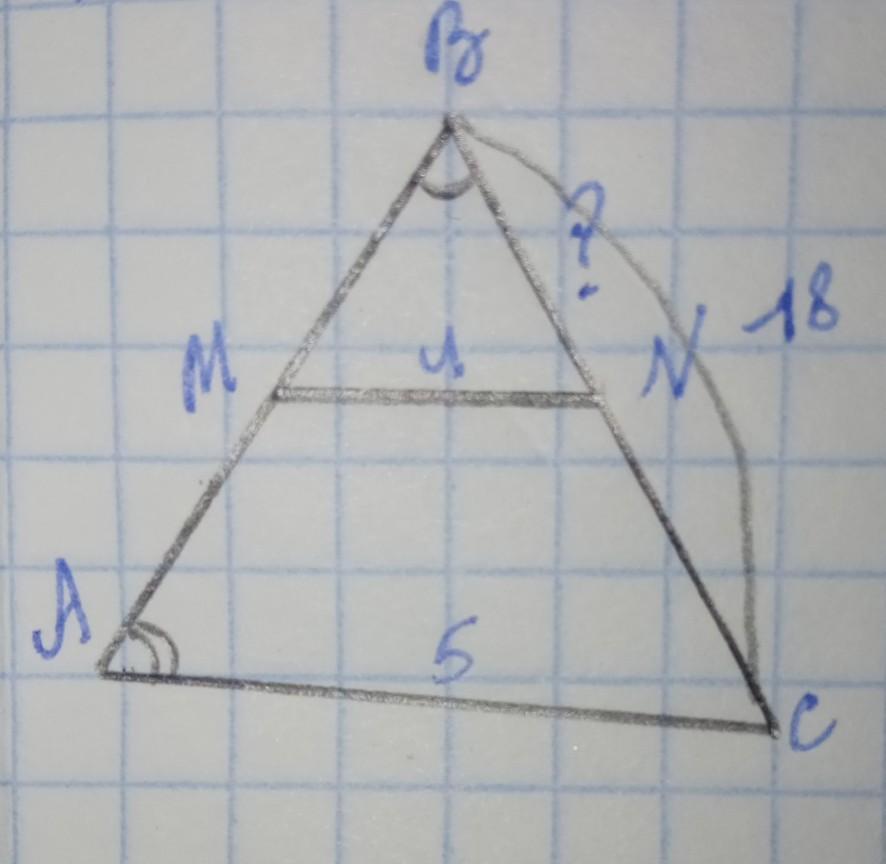 Дано: ∆ABC, MN || AC, MN=4см, AC=5см, BC=18см