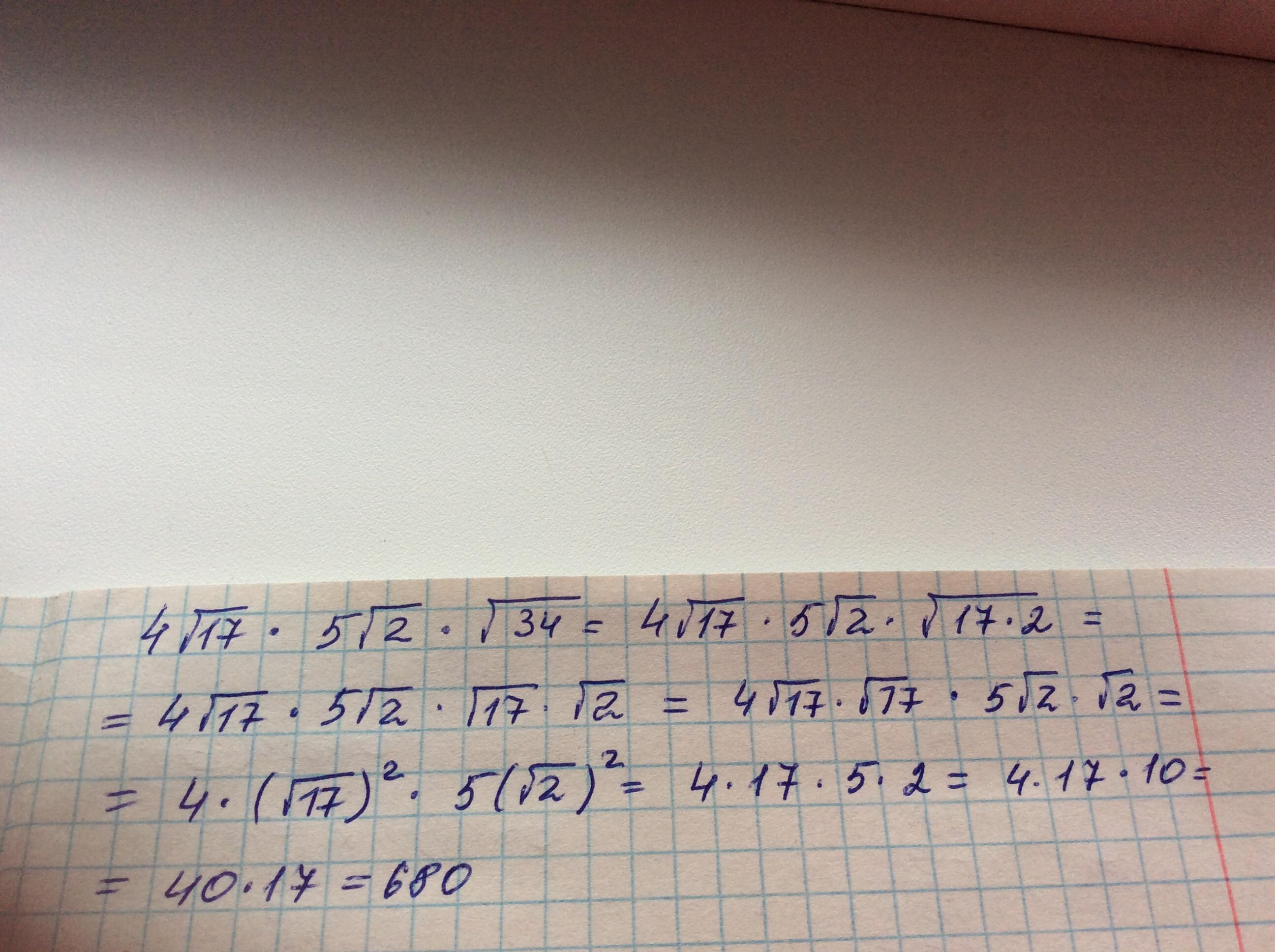 4√17 * 5√2 * √34 = 4*√17*5*√2*√(17*2)=