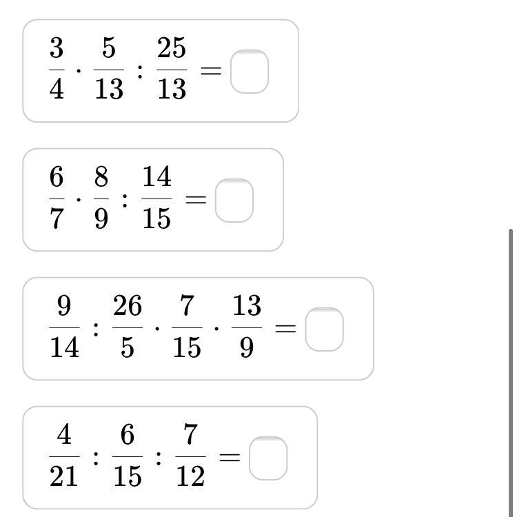 4/21÷6/15÷7/12=4/21×15/6×12/7=40/49