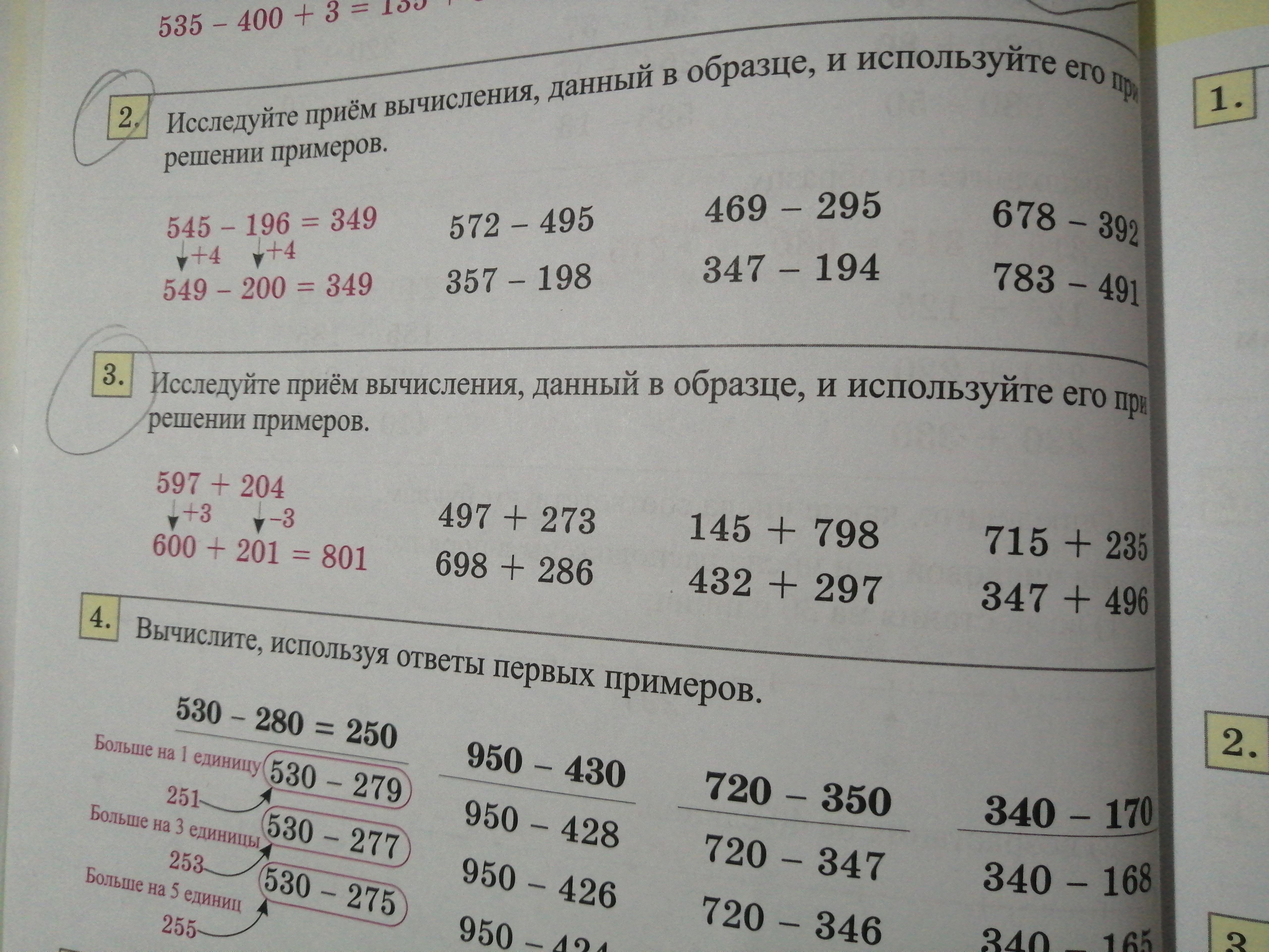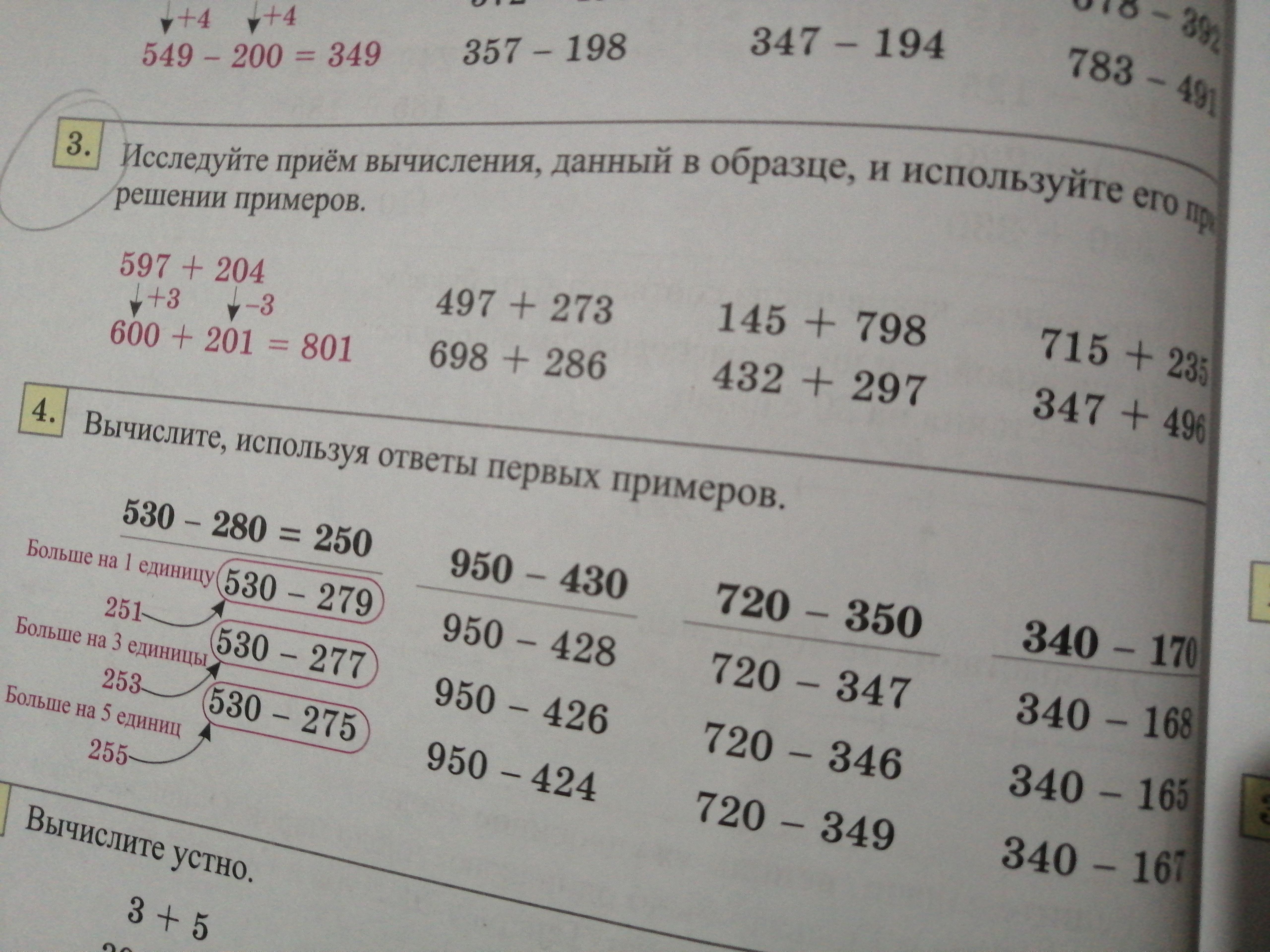 Иследуйте приём вычисления, данным в образце, и используйте его при решении примеров