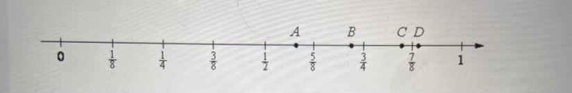 Одна из точек, отмеченных на числовой прямой соответствует числу 8/9. Какая это точка?
