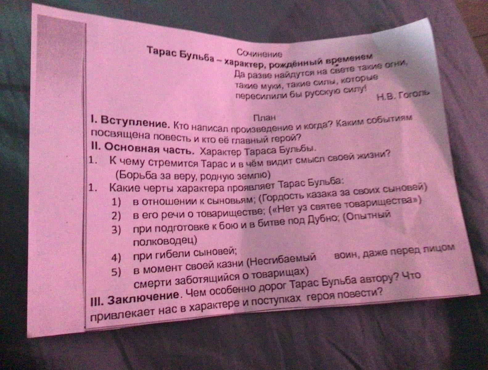 гоголь . год не помню. войне речи посполитой с украиной . несгибаемый решительный готов отдать жизнь за родину веру и товарищей . за сыновей гордится верит в них говорит что они будут атаманами