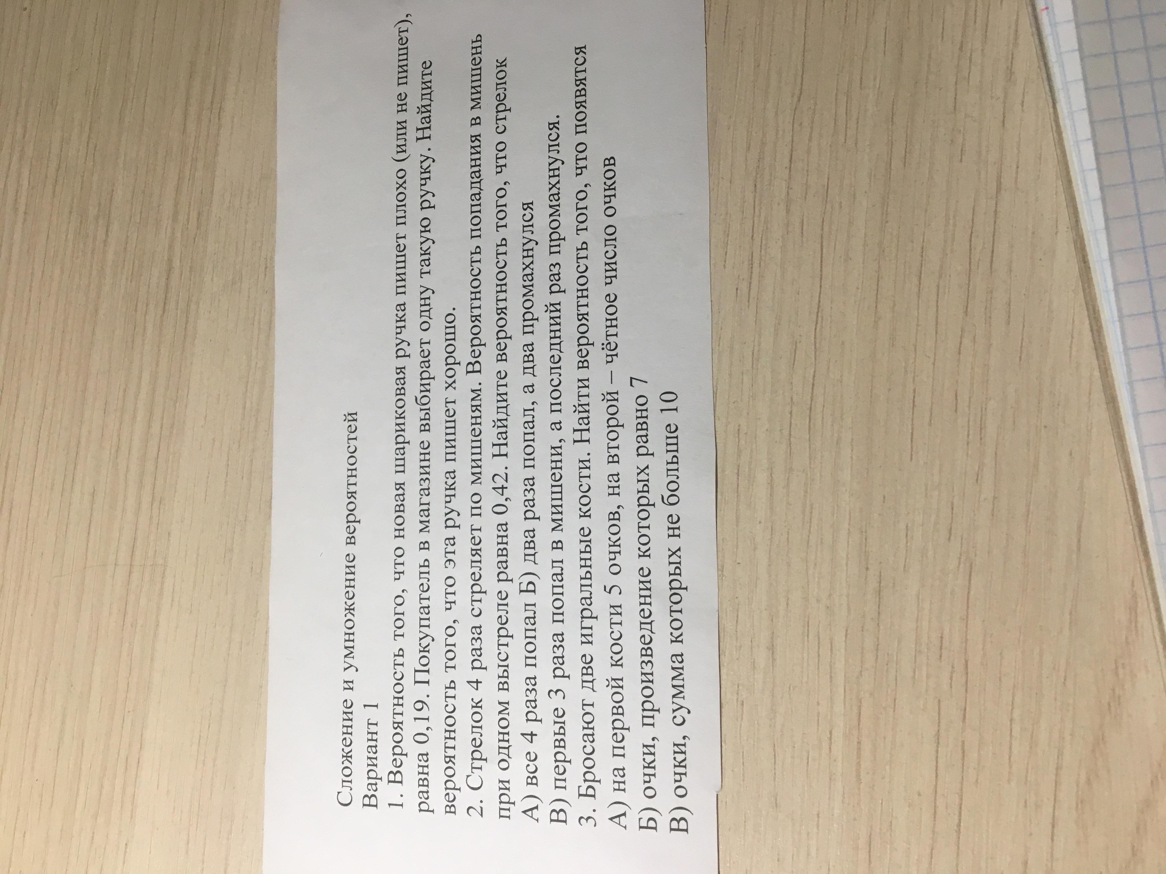 в) 3 раза попал, 1 промах