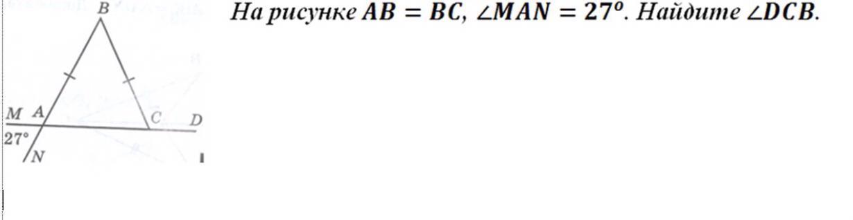 угол DCB = 180° - угол BCA = 180° - 27° = 153° , т.к. эти углы смежные.