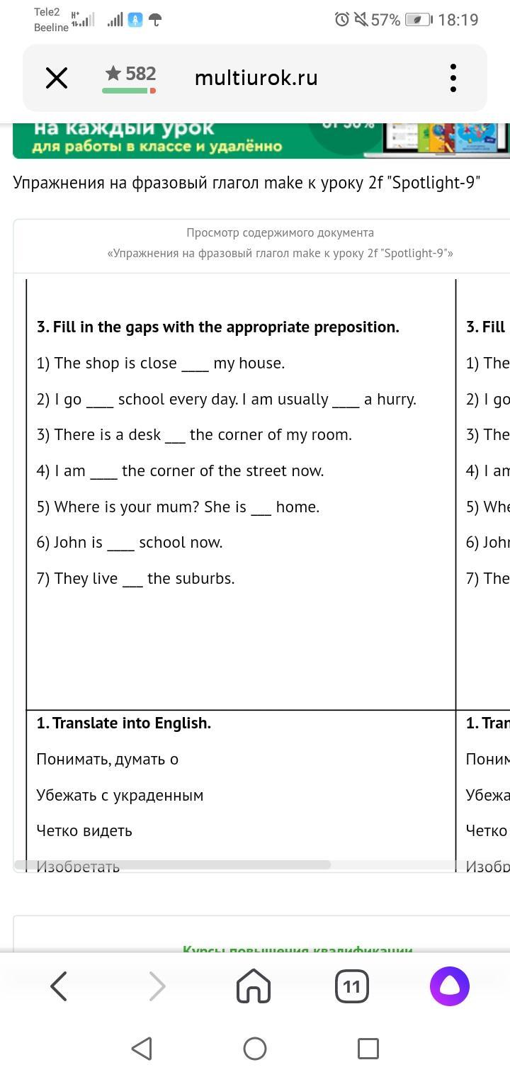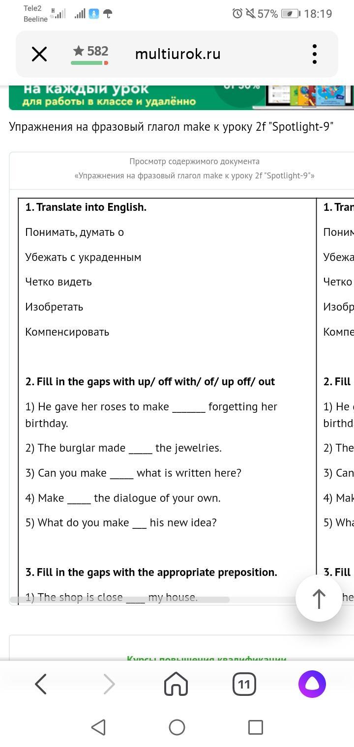 2. Fill in the gaps with up/ off with/ of/ up off/ out