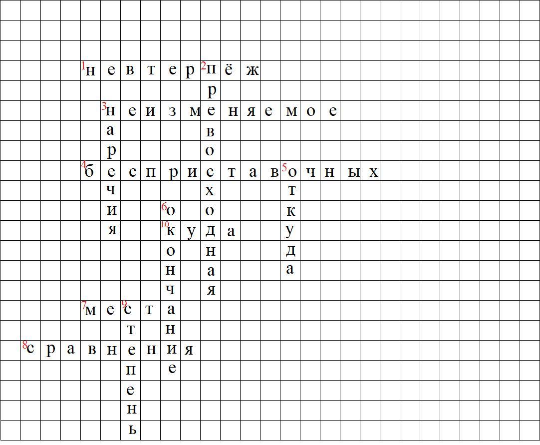 3) (по горизонтали) В отличие от других наречие оно неизменяемое