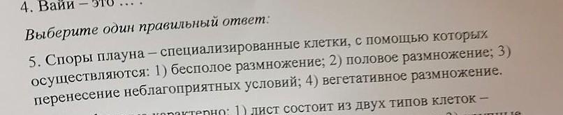 1)Бесполое размножение(с помощью спор)