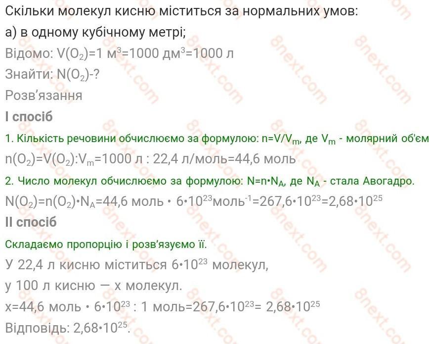 Скільки молекул кисню міститься за нормальних умов: а) а одному кубічному метрі; б) в одному кілограмі цієї речовини?