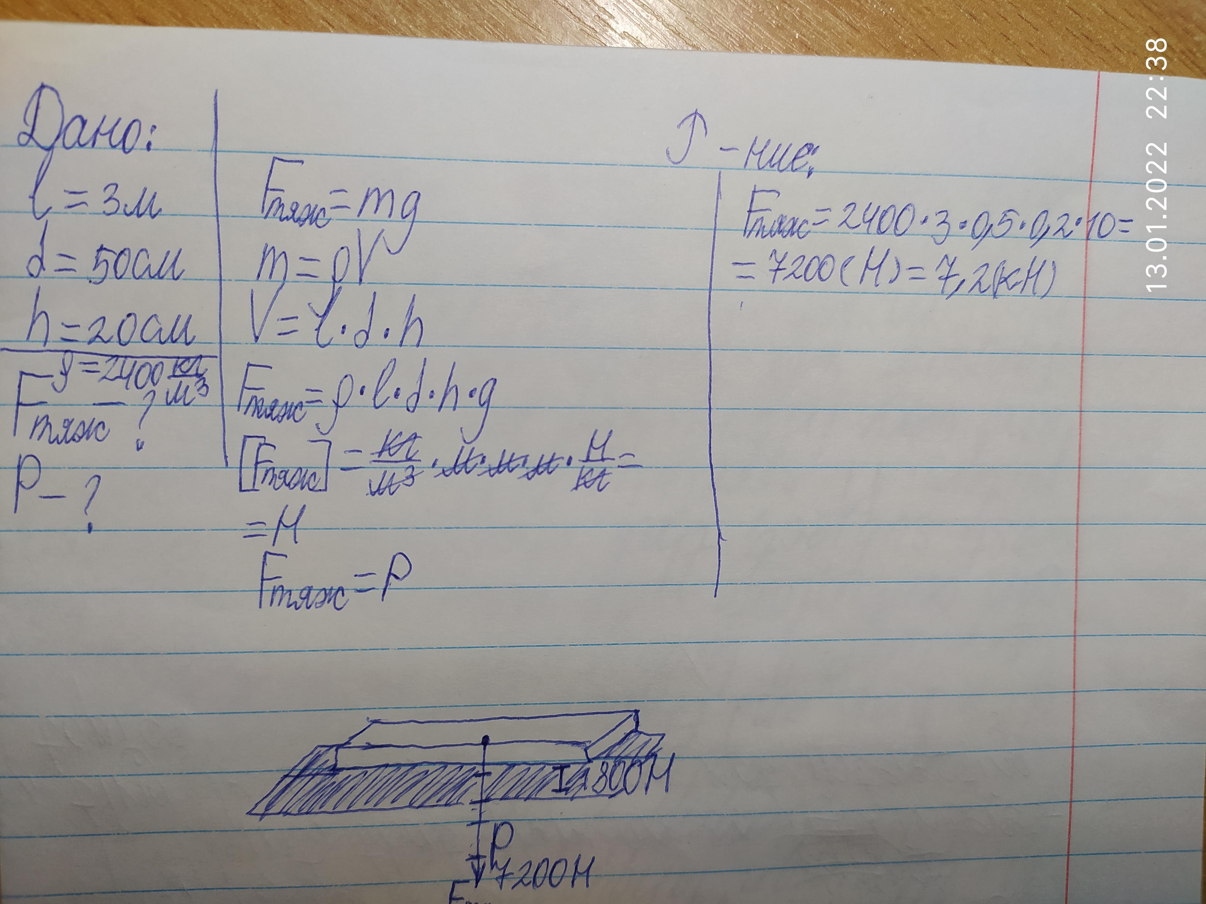 длина бетонные плиты равна 3 м а ширина и толщина соответственно 50 см и 20 см Чему равна сила тяжести действующая на плиту и её вес изобразите силы графически