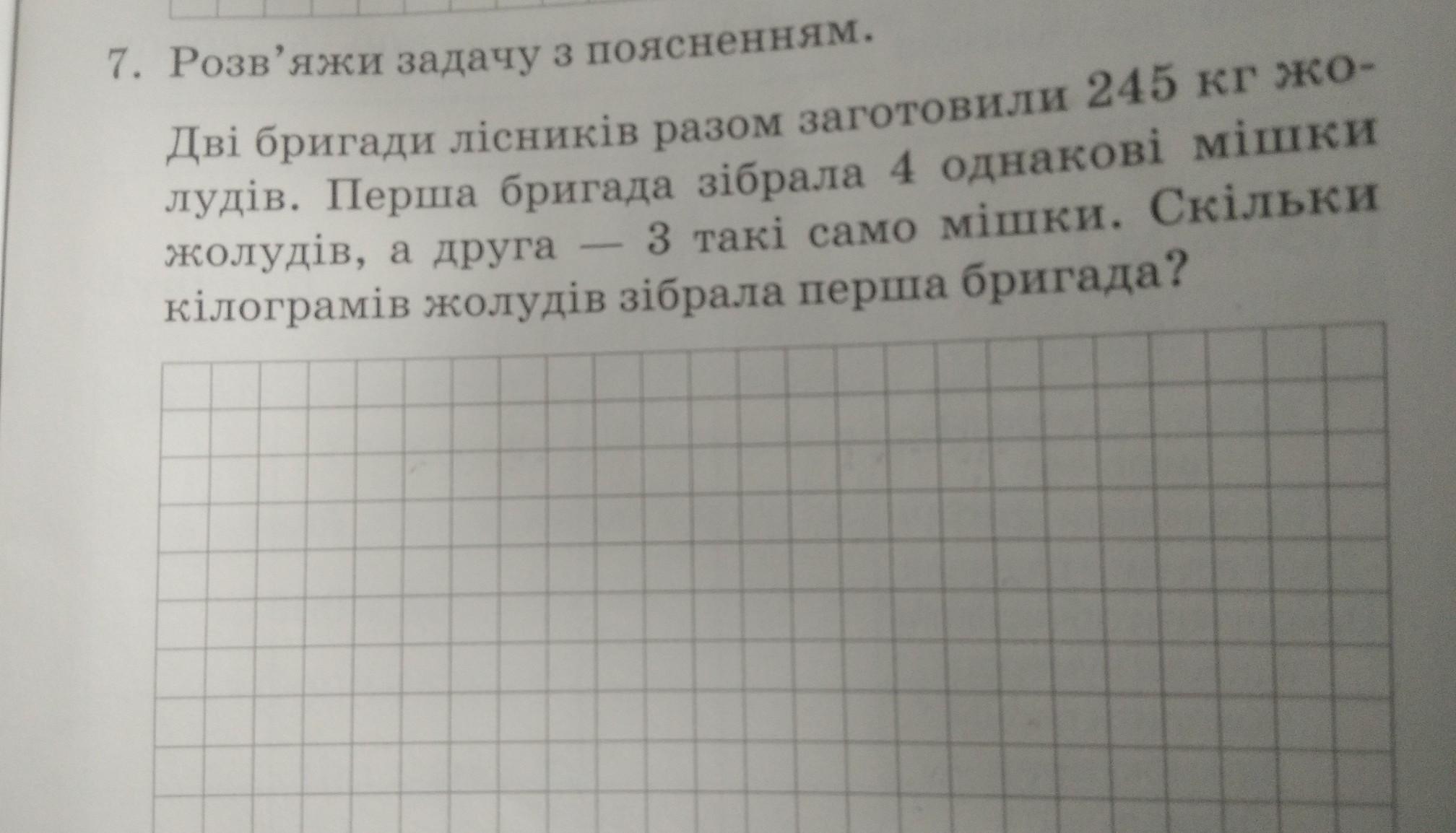 1) 245 кг : 2 = 122,5 кг зібрала 1-ша бригада