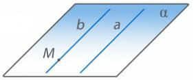 Через прямую а и точку, не лежащую на ней, можно провести единственную плоскость α (Рис.). В плоскости α можно провести единственную прямую b, параллельную а, проходящую через точку M (из аксиомы планиметрии о параллельных прямых). Существование такой прямой доказано.