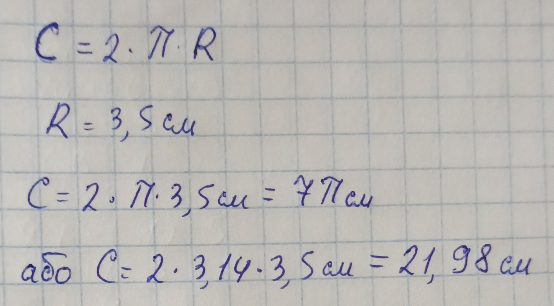 Відповідь: 7π см або 21,98 см