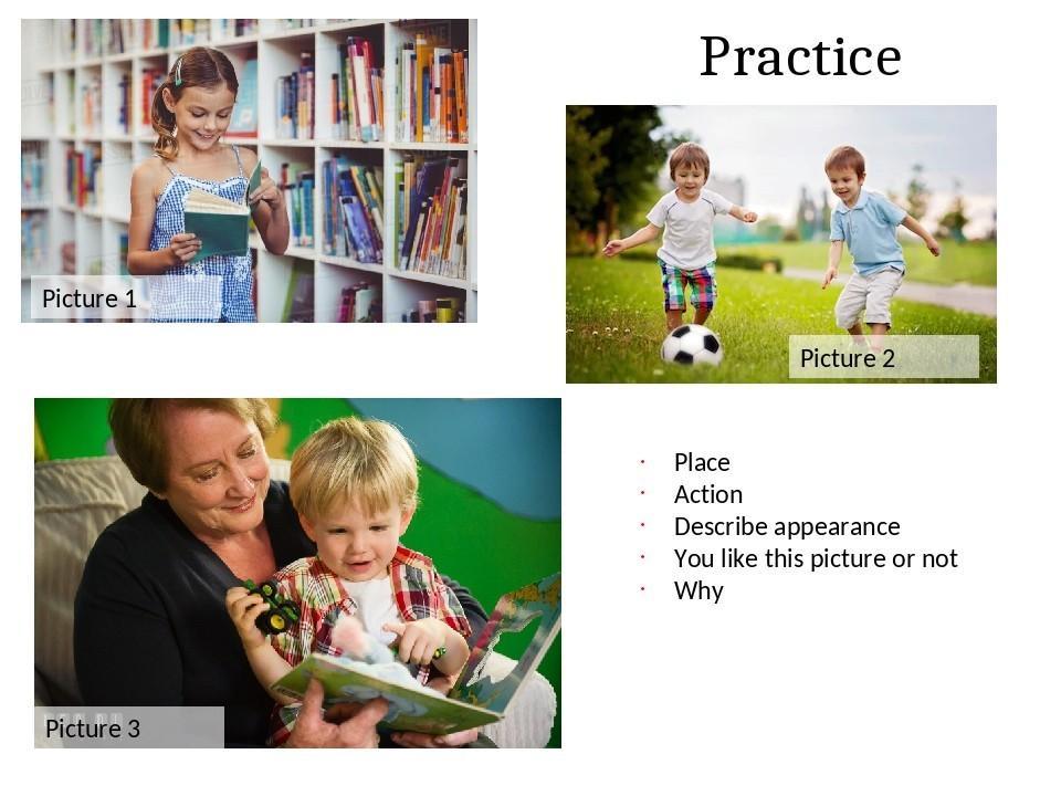 1) A little girl is in the library, she has a green book in her hands. The library is filled with light, it is surrounded by a lot of books.