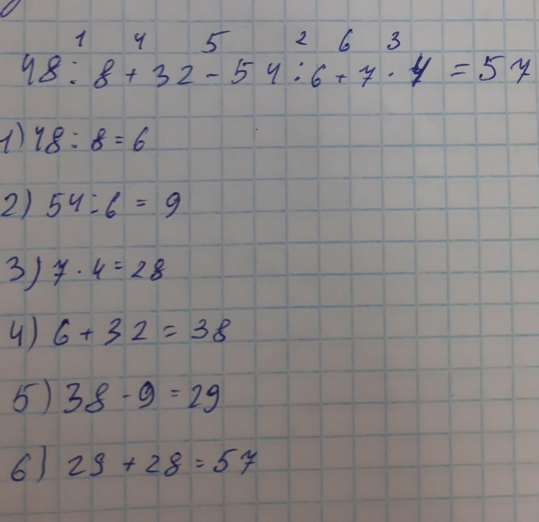сначала идёт деление и умножение потом + и -