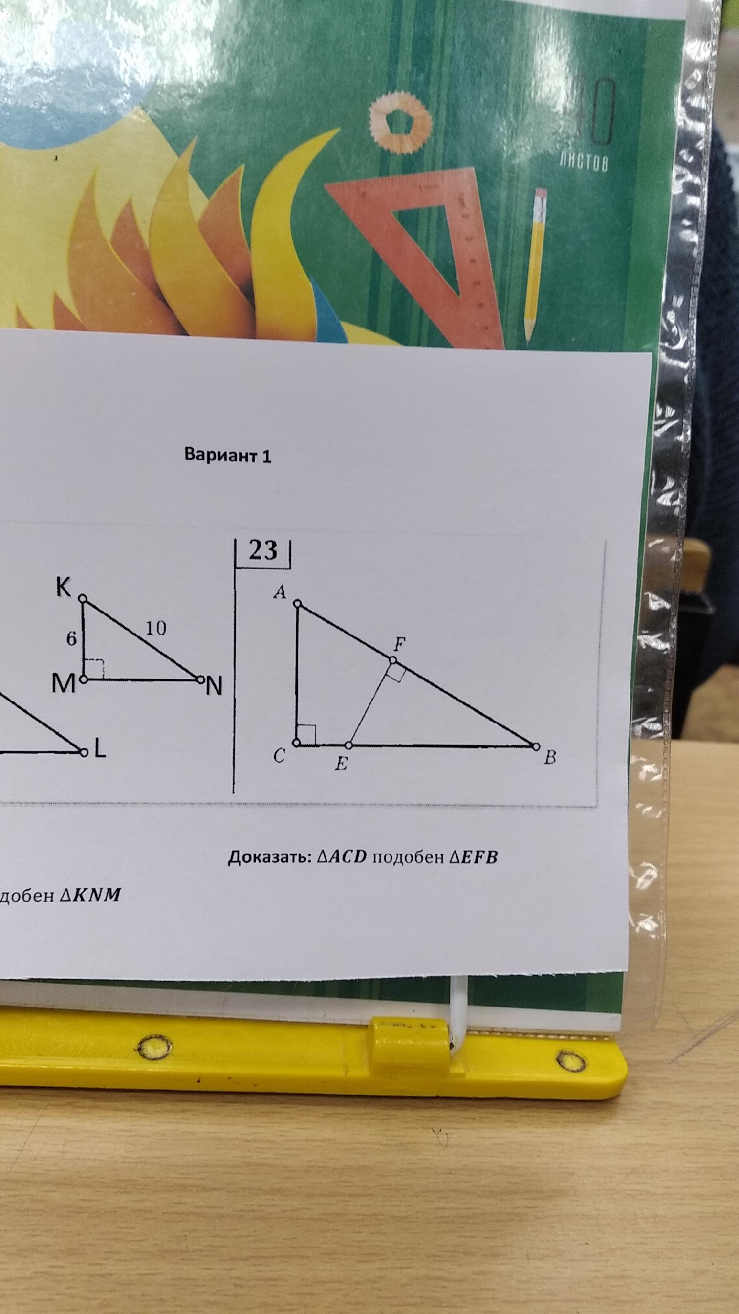 Во вторых у них есть общий угол АВС,а это зачит что его даже измерять не надо он как и для треугольника АВС так и для треугольника FEB имеет одинаковую градусную меру.
