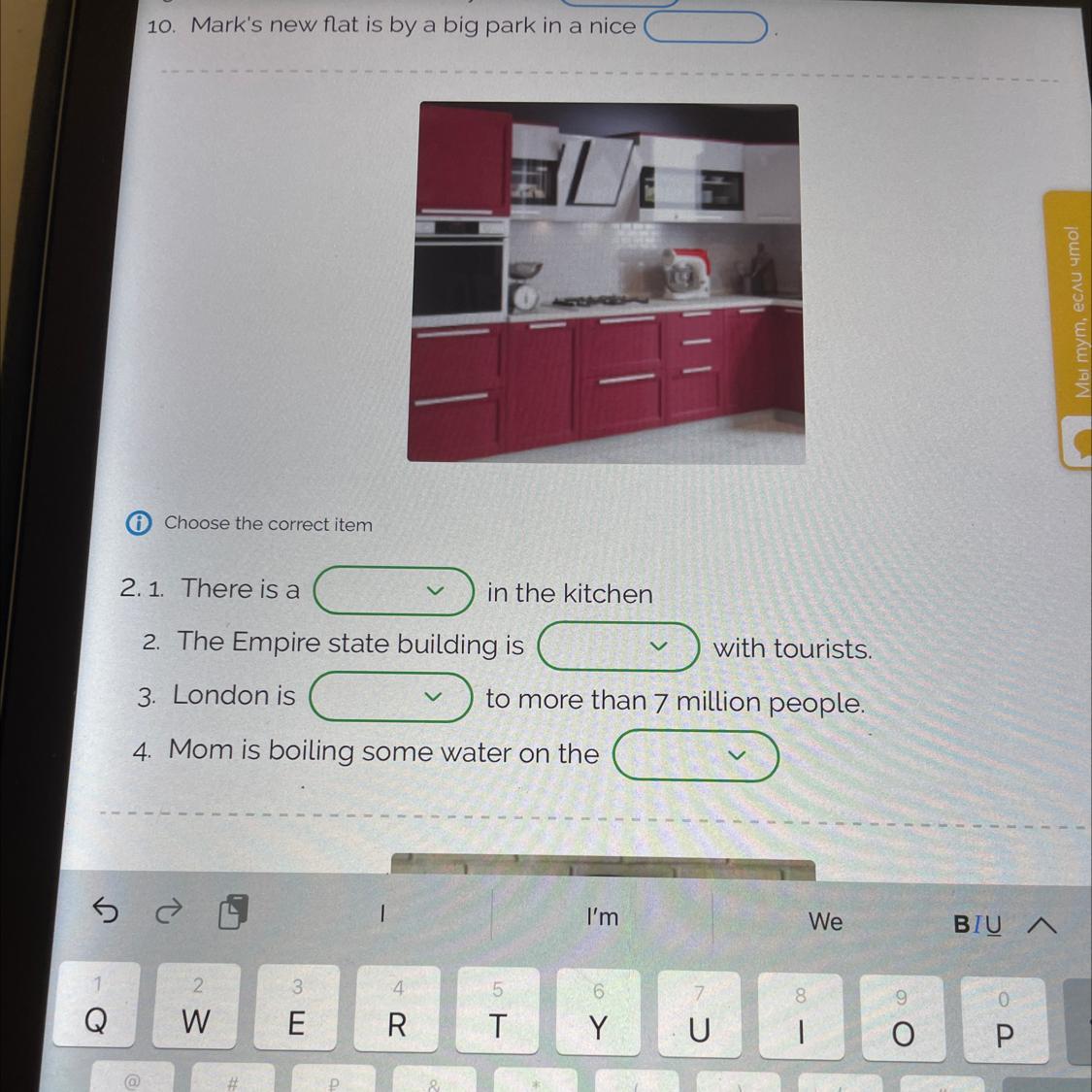 1. There is a fridge in the kitchen.
