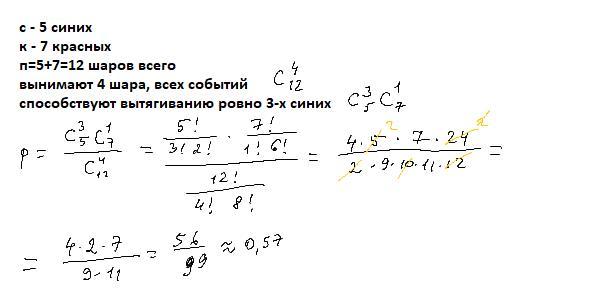 Из коробки, содержащей 5 синих и 7 красных шаров, случайным