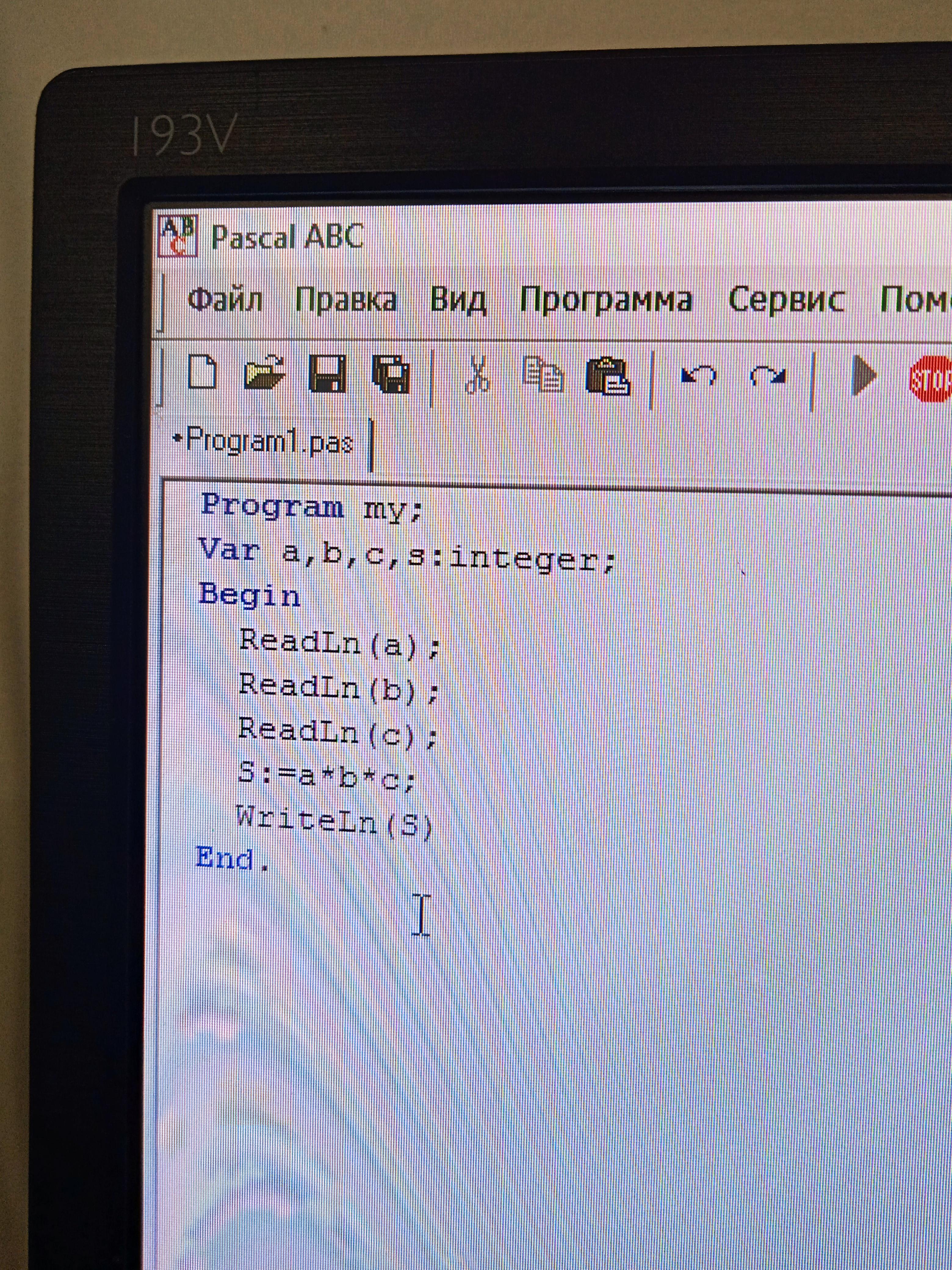 результат S:=a*b*c пишешь с большой буквой S